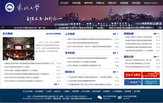 大學”。東北大學網(wǎng)站信息查詢,網(wǎng)址鏈接:http://www.neu.edu.cn/;備案編號:遼ICP備11009868號-3;站點標簽:大學,東北大學,東大,neu" />