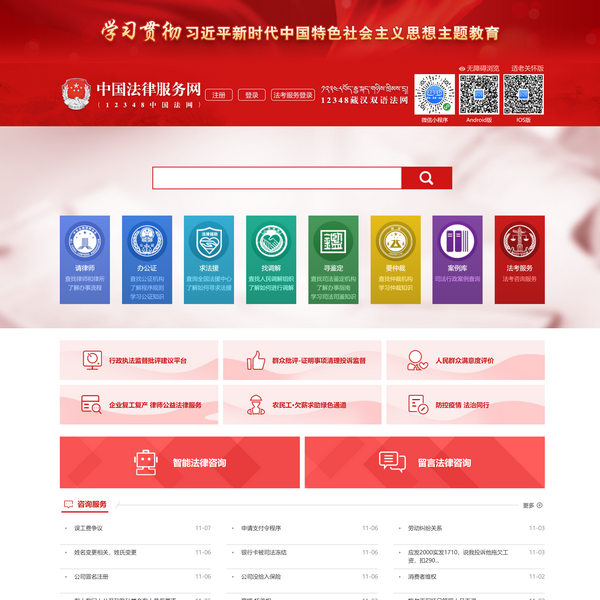 2018年5月20日,由司法部建設(shè)的中國(guó)法律服務(wù)網(wǎng)(12348中國(guó)法網(wǎng))正式上線(xiàn)運(yùn)行。