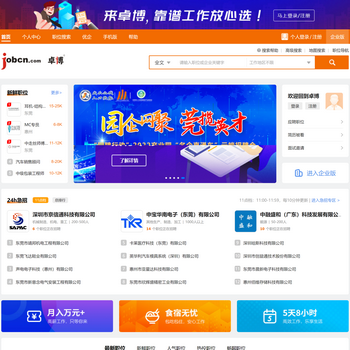 卓博人才網(wǎng)(jobcn.com),由廣東卓博信息科技有限公司于1999年創(chuàng)建,是一家提供線上招聘求職服務(wù)的全國綜合性專業(yè)人才網(wǎng)站。