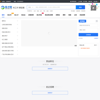 找工作,求職,查招聘信息就上易才網(wǎng),幫助找工作,求職者,大學(xué)生,解決找工作難題并告訴你找工作哪個網(wǎng)站好。為企業(yè)提供真實(shí)準(zhǔn)確的人才招聘,職位,招工信息,招聘排名也可免費(fèi)發(fā)布找工作信息。