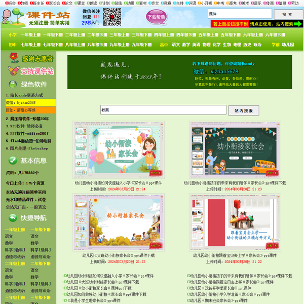 課件站收集整理了小學(xué)、初中、高中所有語文、數(shù)學(xué)、英語、科學(xué)、化學(xué)、物理、生物、歷史、地理、道德與法治、政治等PPT課件、教案教學(xué)設(shè)計(jì)、試卷練習(xí),方便給各位教師和學(xué)生下載,本站宗旨是無須注冊就可下載中小學(xué)上課ppt、教案教學(xué)設(shè)計(jì)、試卷練習(xí),力求無水印的精品中小學(xué)PPT教學(xué)課件、教案教學(xué)設(shè)計(jì)、試卷練習(xí)下載站。
