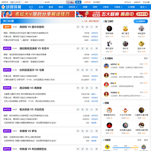 球探體育為您提供最快最全最準的足球比分、籃球即時比分,更有世界范圍內各大足球、籃球賽事比分直播、賽程積分、數據分析等專業(yè)體育數據。