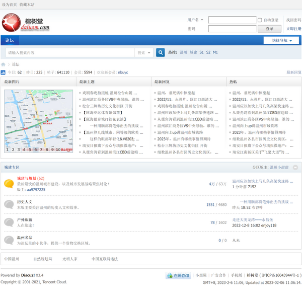 浙江”。榕樹(shù)堂論壇網(wǎng)站信息查詢,網(wǎng)址鏈接:https://www.daluom.com/;備案編號(hào):;站點(diǎn)標(biāo)簽:溫州論壇,溫州城建網(wǎng),溫州城建論壇,大羅山論壇,溫州都市圈,環(huán)大羅山,溫瑞平原" />