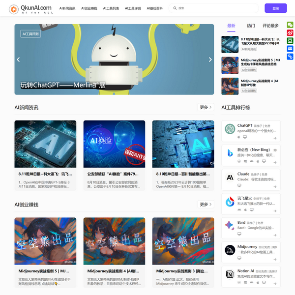 乾坤AI(https://qkunai.com/)已被三體網址大全收錄在網址百科信息庫中,所在分類目錄為”電腦網絡 > 導航 > 常用網址導航“目錄,百科頁面地址:http://m.dgjclw.com/siteinfo/29518.html。三體網址大全匯聚國內優(yōu)秀網站大全,是提升網站外部鏈接流行度以及影響力的權威分類目錄及收錄提交入口,歡迎廣大優(yōu)質網站提交收錄申請。