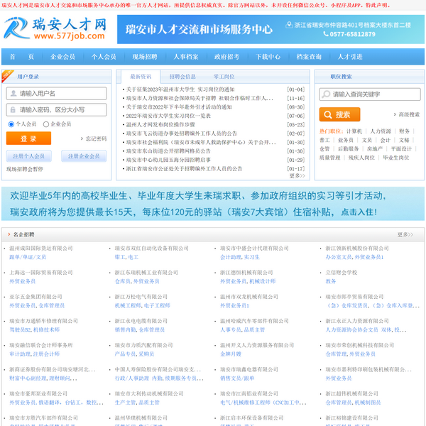 瑞安人才網(wǎng)由瑞安人才市場(chǎng)創(chuàng)辦,是瑞安人才市場(chǎng)***人才網(wǎng)。瑞安求職招聘,瑞安就業(yè),瑞安找工作***瑞安人才網(wǎng)!
