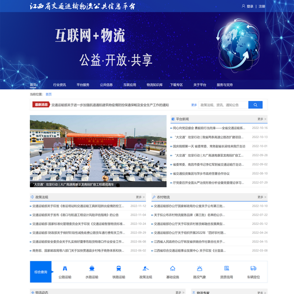 江西省交通運(yùn)輸物流公共信息平臺(tái),是由江西省公路運(yùn)輸管理局負(fù)責(zé)推進(jìn)建設(shè),以“總體規(guī)劃、逐步實(shí)施”的原則逐步推進(jìn)?;诮魇≈腔劢煌ㄔ破脚_(tái),建立江西省交通運(yùn)輸物流公共信息平臺(tái),實(shí)現(xiàn)江西省交通運(yùn)輸廳內(nèi)的物流資源信息整合,與江西省公路運(yùn)輸管理局、江西省交通運(yùn)輸廳信息中心、江西省港航管理局等部門實(shí)現(xiàn)業(yè)務(wù)系統(tǒng)對(duì)接。并通過門戶網(wǎng)站以及移動(dòng)終端兩種渠道,為政府與行業(yè)管理部門、企業(yè)用戶和社會(huì)用戶提供交通運(yùn)輸物流公共信息服務(wù)。部分實(shí)現(xiàn)與國(guó)家交通運(yùn)輸物流公共信息平臺(tái)及各省級(jí)相關(guān)平臺(tái)數(shù)據(jù)交換;部分實(shí)現(xiàn)與企業(yè)平臺(tái)或系統(tǒng)數(shù)據(jù)交換;實(shí)現(xiàn)三個(gè)專業(yè)服務(wù)應(yīng)用項(xiàng)目,包括多式聯(lián)運(yùn)信息、無車承運(yùn)人信息、數(shù)據(jù)分析等服務(wù)。