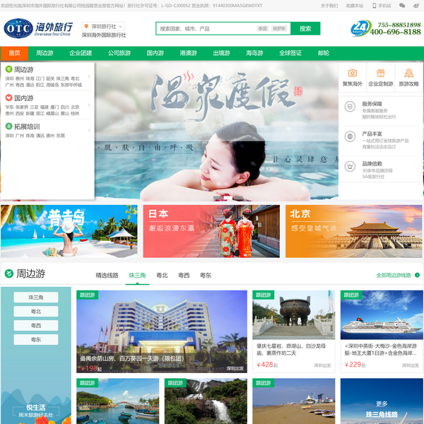 【深圳市海外國(guó)際旅行社有限公司TOOTOUR.COM】是深圳旅行社***實(shí)力的深圳旅游公司、深圳國(guó)際旅行社。專業(yè)提供深圳旅游、深圳公司旅游、香港旅游、深圳出國(guó)旅游、國(guó)內(nèi)游、省內(nèi)游、公司企業(yè)團(tuán)建、拓展訓(xùn)練旅游、自由行、代辦簽證等全面旅游服務(wù),豐富旅游線路,優(yōu)惠旅游報(bào)價(jià),優(yōu)質(zhì)旅行服務(wù)盡在深圳國(guó)旅官網(wǎng),深圳國(guó)際旅行社和深圳國(guó)旅全國(guó)預(yù)訂熱線4006968188!