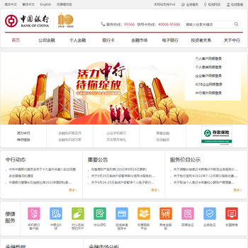 中國銀行是中國持續(xù)經營時間最久的銀行。1912年2月正式成立,先后行使中央銀行、國際匯兌銀行和國際貿易專業(yè)銀行職能。1949年以后,長期作為國家外匯外貿專業(yè)銀行,統(tǒng)一經營管理國家外匯,開展國際貿易結算、僑匯和其他非貿易外匯業(yè)務。1994年改組為國有獨資商業(yè)銀行,全面提供各類金融服務,發(fā)展成為本外幣兼營、業(yè)務品種齊全、實力雄厚的大型商業(yè)銀行。2006年率先成功在香港聯(lián)交所和上海證券交易所掛牌上市,成為國內首家“A+H”上市銀行。中國銀行是2008年北京夏季奧運會和2022年北京冬季奧運會***官方銀行合作伙伴,是中國***的“雙奧銀行”。2011年,中國銀行在新興經濟體中首家入選并在此后連續(xù)11年入選全球系統(tǒng)重要性銀行,國際地位、競爭能力、綜合實力已躋身全球大型銀行前列。2022年,迎來110周年華誕的中國銀行,正在構建以境內商業(yè)銀行為主體、全球化綜合化為兩翼的戰(zhàn)略格局,加快建設全球一流現(xiàn)代銀行集團,奮力書寫百年歷史新篇章。