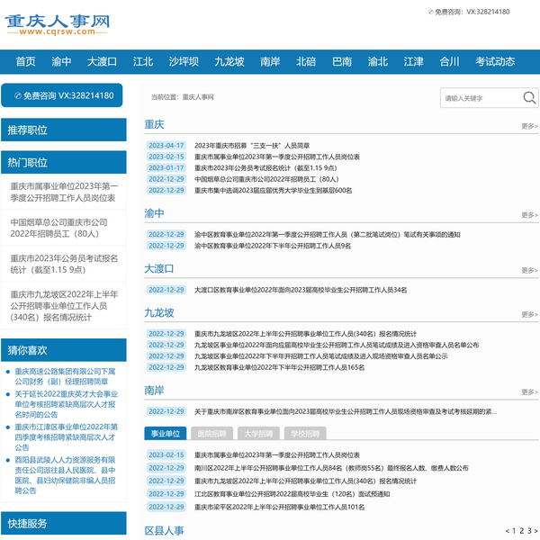 重慶人事考試、重慶國企、央企、事業(yè)單位、醫(yī)院、學(xué)校人才招考信息發(fā)布。