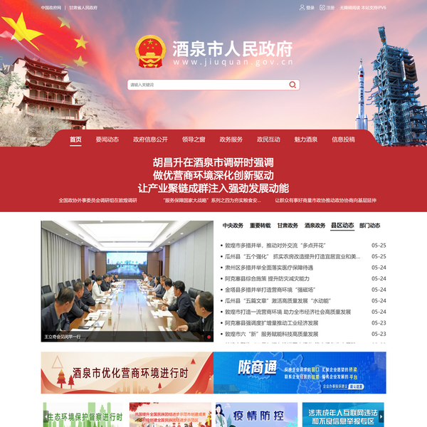 甘肅”。酒泉市人民政府網(wǎng)站信息查詢,網(wǎng)址鏈接:http://www.jiuquan.gov.cn/;備案編號:隴ICP備09004414號-2;站點標簽:酒泉市,甘肅酒泉,酒泉市政府,酒泉政府網(wǎng)站,酒泉市人民政府" />