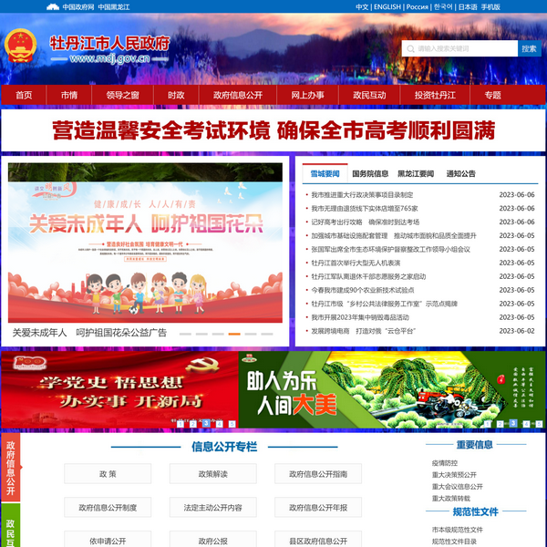 牡丹江政府門戶網(wǎng)站是牡丹江市人民政府對外的窗口!