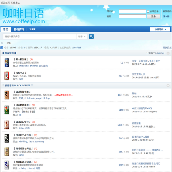 咖啡日語論壇 以日語學(xué)習(xí)論壇為主體的綜合網(wǎng)站,包括JLPT、J.test、商務(wù)日語、日本新聞、日語工作等。