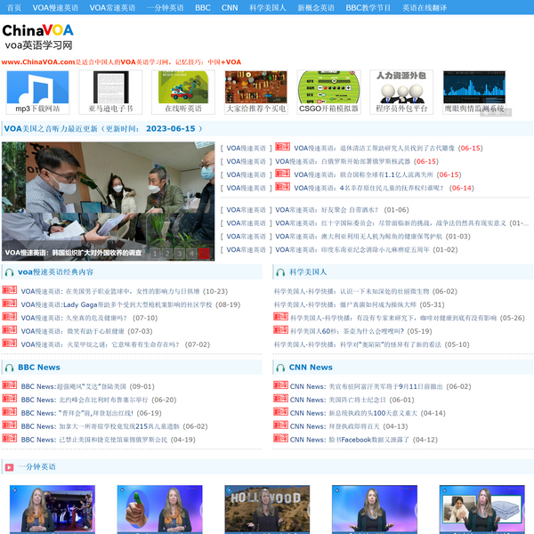 VOA英語學(xué)習(xí)網(wǎng)(https://www.chinavoa.com/)已被三體網(wǎng)址大全收錄在網(wǎng)址百科信息庫中,所在分類目錄為”其他分類 > 英語 > 英語學(xué)習(xí)“目錄,百科頁面地址:http://m.dgjclw.com/siteinfo/4133.html。三體網(wǎng)址大全匯聚國內(nèi)優(yōu)秀網(wǎng)站大全,是提升網(wǎng)站外部鏈接流行度以及影響力的權(quán)威分類目錄及收錄提交入口,歡迎廣大優(yōu)質(zhì)網(wǎng)站提交收錄申請(qǐng)。