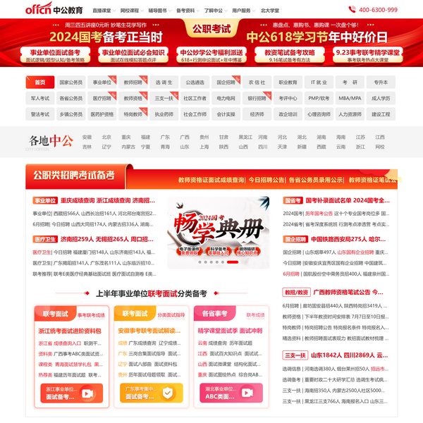 【中公教育-公務(wù)員培訓(xùn)機(jī)構(gòu)】提供2024國(guó)考、省考、事業(yè)編、教師、銀行、考研、專升本等公告、時(shí)間、職位表、報(bào)名、成績(jī)、試題、網(wǎng)校、筆試面試輔導(dǎo)及IT培訓(xùn)班等。