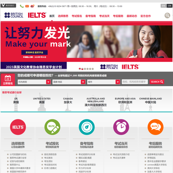 雅思,全球英語(yǔ)測(cè)評(píng)***,獲得逾11,500所院校機(jī)構(gòu)信賴。每年,在140多個(gè)國(guó)家和地區(qū)超過350萬(wàn)人次參加雅思考試實(shí)現(xiàn)夢(mèng)想。不論留學(xué),移民或職業(yè)發(fā)展,雅思都是您值得信賴的***。