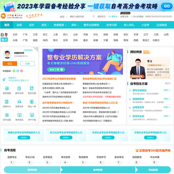 自考365,自考網(wǎng)站,自考培訓(xùn)機(jī)構(gòu),連續(xù)多年獲得全國(guó)十佳網(wǎng)絡(luò)教育機(jī)構(gòu)稱(chēng)號(hào),常年提供自考專(zhuān)業(yè)輔導(dǎo)和自考本科輔導(dǎo),開(kāi)設(shè)有自考輔導(dǎo)班,專(zhuān)家授課,提供24小時(shí)在線答疑。此外還免費(fèi)為廣大高自考學(xué)員提供自考報(bào)名,成績(jī)查詢,自考試題,考試時(shí)間等信息;并開(kāi)設(shè)有自考論壇互動(dòng)社區(qū);服務(wù)熱線:010-82335555。