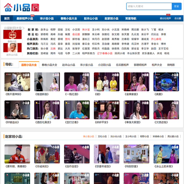小品屋網(wǎng)羅央視春晚小品搞笑大全,春晚小品大全及搞笑小品視頻下載,趙本山小品全集高清視頻,匯集宋小寶小品搞笑大全、小沈陽、 蔡明、郭冬臨、馮鞏、黃宏、潘長江、宋丹丹、趙家班、郭德綱于謙、德云社等眾多相聲小品大師作品全集。