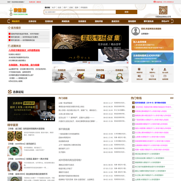古泉園地網(wǎng)站初建于1999年,日瀏覽量過(guò)2,000,000 ,是古錢界公認(rèn)最著名的專業(yè)網(wǎng)站。匯集海內(nèi)外的專家學(xué)者,收藏愛(ài)好人士和專業(yè)泉商,并得到了中國(guó)錢幣學(xué)會(huì)等專業(yè)團(tuán)體的好評(píng),己成為了古泉界討論和交流的網(wǎng)上家園。