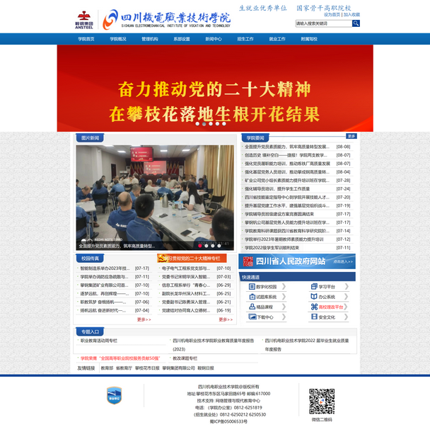 四川機電職業(yè)技術學院(攀鋼黨校)是在原攀枝花鋼鐵公司冶金工業(yè)學校(簡稱攀鋼冶金工業(yè)學校)基礎上發(fā)展起來的川西南滇西北辦學規(guī)模***、水平***的公辦高職院校和省內(nèi)一流的企業(yè)黨校。