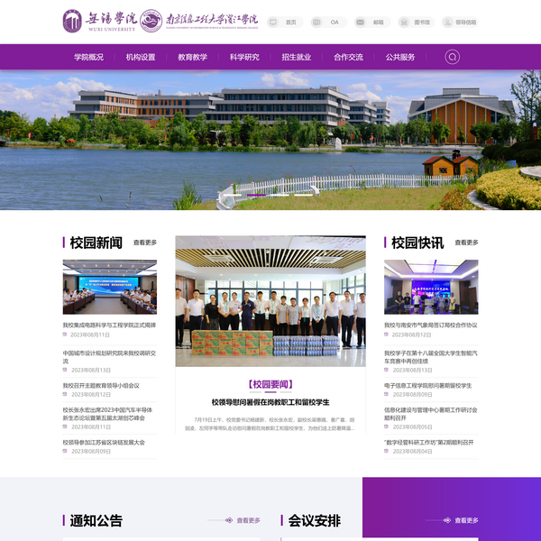 無錫學院是一所經(jīng)教育部批準,由江蘇省人民政府管理、無錫市人民政府舉辦、南京信息工程大學支持辦學的公辦普通本科高校,其前身為創(chuàng)建于2002年5月的南京信息工程大學濱江學院。學校堅持社會主義辦學方向,秉承“開放發(fā)展、協(xié)同發(fā)展、特色發(fā)展”的辦學理念,構(gòu)建了無錫學院、無錫研究生院、大學科技園“三位一體”的辦學體系。學校位于無錫市錫山大道333號,毗鄰錫東新城核心區(qū)、無錫高鐵東站、蘇南碩放國際機場,地理位置優(yōu)越,風景優(yōu)美。校園占地面積1100余畝,建筑總面積33.5萬平方米,是一所現(xiàn)代化的智慧校園、生態(tài)校園、人文校園和低碳校園。學?,F(xiàn)有在校本科生1萬余人、留學生近300人,與南京信息工程大學聯(lián)合培養(yǎng)研究生700余人。