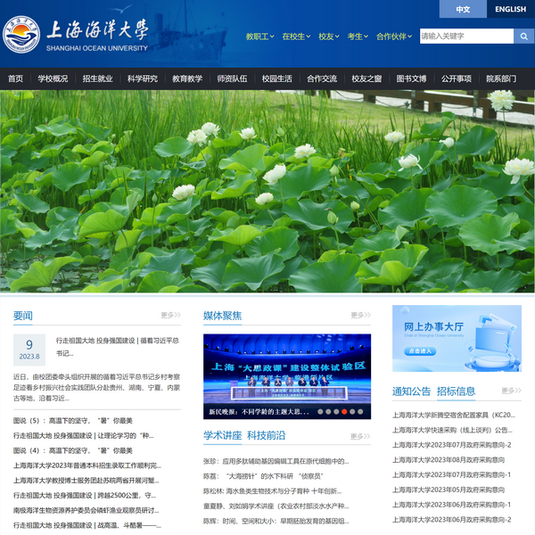 上海海洋大學(https://www.shou.edu.cn/)已被三體網址大全收錄在網址百科信息庫中,所在分類目錄為”其他分類 > 院校 > 綜合性大學“目錄,百科頁面地址:http://m.dgjclw.com/siteinfo/4893.html。三體網址大全匯聚國內優(yōu)秀網站大全,是提升網站外部鏈接流行度以及影響力的權威分類目錄及收錄提交入口,歡迎廣大優(yōu)質網站提交收錄申請。