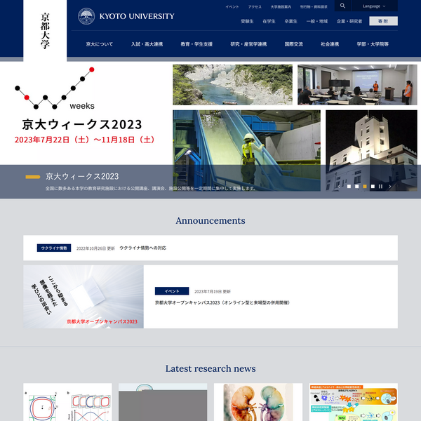 京都大學(xué)のオフィシャルサイトです。學(xué)部?大學(xué)院、研究所等の案內(nèi)や、入試?入學(xué)案內(nèi)、教育研究活動(dòng)、キャンパスの***情報(bào)など、京都大學(xué)に関する情報(bào)をご覧いただけます。