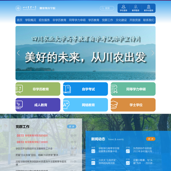 四川農(nóng)業(yè)大學(xué)是國家“211工程”重點(diǎn)建設(shè)大學(xué)和國家“雙一流”建設(shè)高校,擁有厚重的文化積淀、雄厚的師資力量、強(qiáng)大的科研實(shí)力和優(yōu)越的教學(xué)條件。繼續(xù)教育學(xué)院作為學(xué)校中層單位,充分利用學(xué)校各類資源和現(xiàn)代教育技術(shù)手段,承擔(dān)著學(xué)歷繼續(xù)教育和非學(xué)歷繼續(xù)教育的辦學(xué)任務(wù),形成了質(zhì)量、規(guī)模、結(jié)構(gòu)和效益協(xié)調(diào)發(fā)展的良好格局,是學(xué)校人才培養(yǎng)體系的重要組成部分。