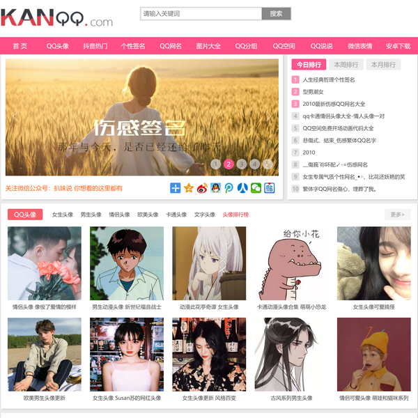 KanQQ個(gè)性網(wǎng)專注于分享QQ個(gè)性內(nèi)容,我們提供***最炫的QQ頭像、QQ網(wǎng)名、QQ個(gè)性簽名、QQ分組、QQ皮膚、QQ說說、QQ表情、QQ日志等QQ周邊個(gè)性內(nèi)容,還有最全的唯美圖片、QQ心情日志等QQ空間素材等您發(fā)現(xiàn)和使用,看QQ個(gè)性網(wǎng)是您裝扮個(gè)性QQ的***網(wǎng)站。