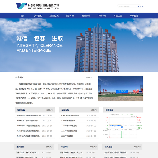永泰能源集團股份有限公司是一家在上海證券交易所上市的綜合能源類企業(yè),股票簡稱:永泰能源,股票代碼:600157,英文簡稱:WTECL。公司成立于1992年7月30日,于1998年5月13日在上海證券交易所上市。公司注冊資本:22,217,764,145元,總部辦公地址:山西省太原市小店區(qū)親賢北街9號雙喜廣場20、26、27層。公司主要從事煤炭、電力、石化、儲能等能源產(chǎn)業(yè),主營業(yè)務(wù)形成了煤電互補的綜合能源經(jīng)營格局。