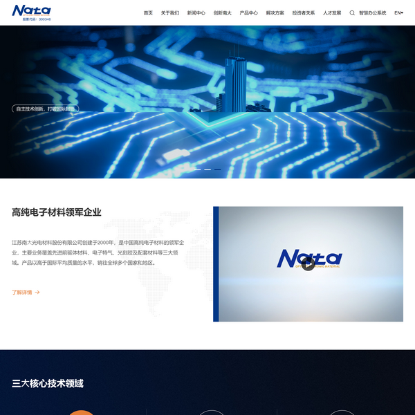 江蘇南大光電材料股份有限公司誕生于國家“863”計劃,創(chuàng)辦于2000年,成長于國家“02-專項”,2012年8月7日在深圳證券交易所創(chuàng)業(yè)板掛牌上市(股票代碼300346)。二十多年來,公司一直緊跟國家發(fā)展戰(zhàn)略,圍繞前驅(qū)體材料(包含MO源)、電子特氣和光刻膠三項核心電子材料進行奮斗,并形成三大核心業(yè)務布局。公司在江蘇蘇州、浙江寧波、安徽全椒、山東淄博、內(nèi)蒙古烏蘭察布設(shè)立研發(fā)生產(chǎn)基地,在北美設(shè)立營銷技術(shù)服務分公司,產(chǎn)品廣泛應用于制備IC、LCD、LED、OLED、功率器件、半導體激光器等領(lǐng)域。