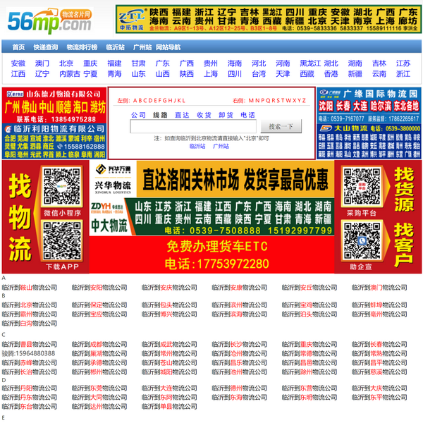 物流名片網(wǎng) 作為專業(yè)的 臨沂物流網(wǎng) 主要提供臨沂物流專線查詢、臨沂物流公司查詢、臨沂物流公司地址、電話查詢等服務(wù),臨沂56物流網(wǎng)出版發(fā)行臨沂物流公司查詢雜志方便用戶發(fā)貨,我們將做專業(yè)的 臨沂物流網(wǎng) 為廣大批發(fā)城商戶和臨沂物流公司服務(wù)!