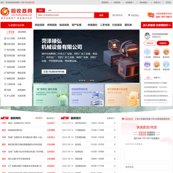 回收商網(wǎng)是提供廢舊物資、二手設(shè)備、廢金屬、廢塑料、廢紙回收、廢品回收的再生資源產(chǎn)業(yè)綜合服務(wù)平臺(tái),是回收商人的網(wǎng)上助手,回收生意的利器?;厥丈叹W(wǎng)還提供:廢塑料、廢金屬、廢鐵、廢鋼、廢銅每日價(jià)格行情報(bào)價(jià),廢舊物資、二手設(shè)備拍賣(mài)等,回收商網(wǎng)不但擁有海量供求、拍賣(mài)信息,而且還具有完善的會(huì)員體系,使商戶(hù)在網(wǎng)絡(luò)大潮中運(yùn)籌帷幄。做二手設(shè)備、廢舊物資,就選回收商網(wǎng)。