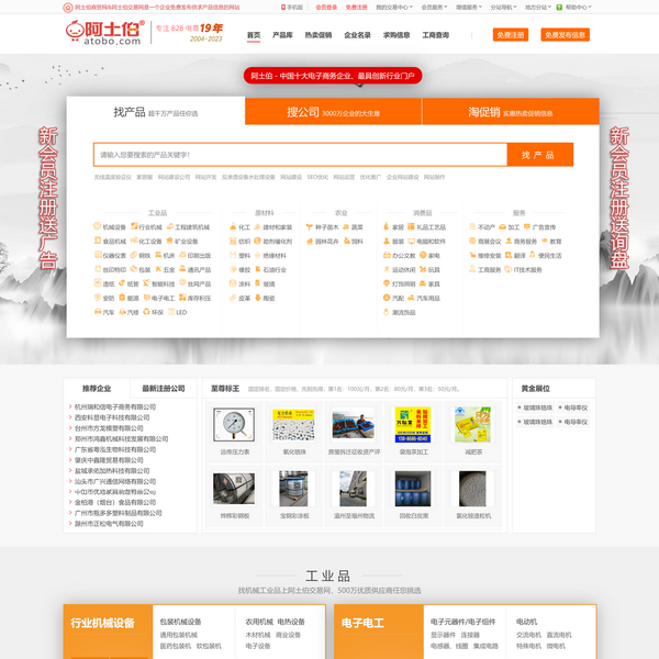 阿土伯交易網(wǎng)是中國實名制認證的B2B電子商務(wù)網(wǎng)站和電子商務(wù)交易平臺;我們專注于為廣大中小企業(yè)、經(jīng)紀人以及采購商提供專業(yè)的交易平臺。累計注冊會員700多萬,其中10萬多家活躍的供應(yīng)商和近萬家采購商,涉及機械,設(shè)備,五金,工具,化工,塑料,電子,電工,儀器儀表,安防等多個行業(yè)。阿土伯旨在為創(chuàng)造一個簡單、實用的B2B在線交易網(wǎng)站。