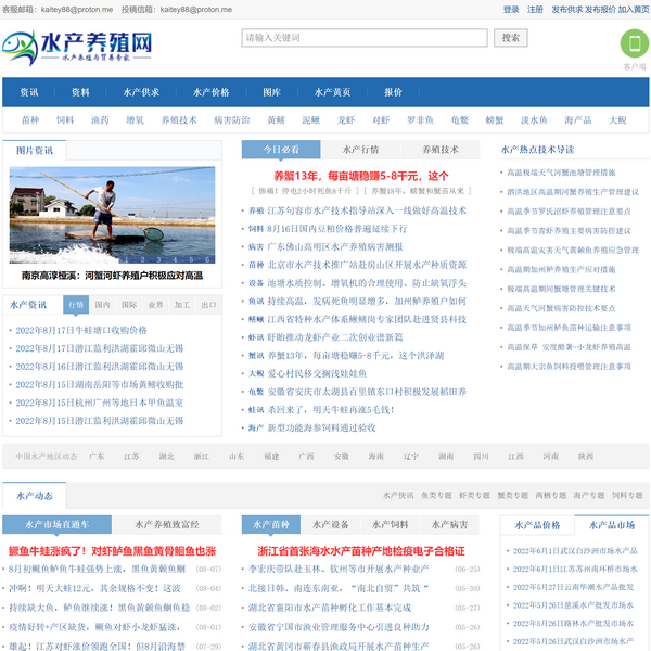 水產(chǎn)養(yǎng)殖網(wǎng)成立于2006年9月,網(wǎng)站以提供水產(chǎn)業(yè)信息、資訊及水產(chǎn)品供求貿(mào)易與行業(yè)交流為主,具體涉及行業(yè)動(dòng)態(tài)、市場行情、養(yǎng)殖技術(shù)、熱門品種推薦、水產(chǎn)飼料、水產(chǎn)加工、水產(chǎn)人才、水產(chǎn)論壇、水產(chǎn)供求、技術(shù)培訓(xùn)、市場推廣、會(huì)展等內(nèi)容和服務(wù),現(xiàn)已成為水產(chǎn)新媒體品牌。
