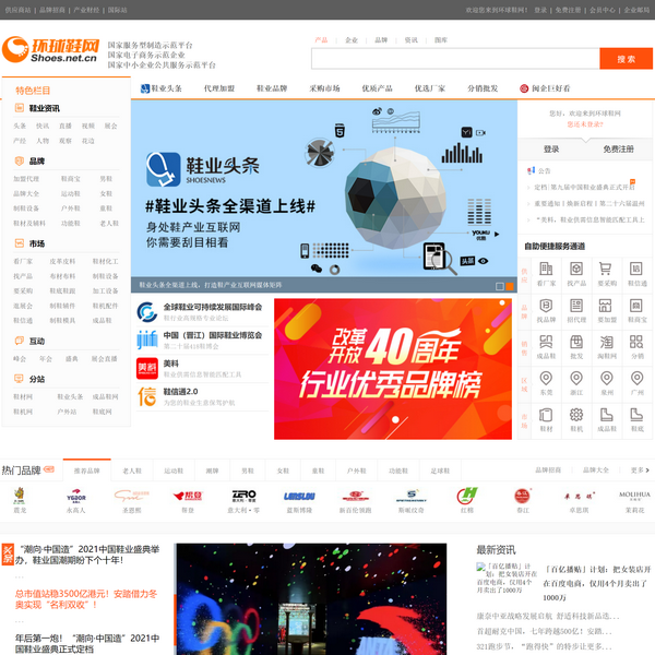 環(huán)球鞋網(wǎng)優(yōu)質(zhì)B2B鞋子行業(yè)電子商務(wù)平臺,為您提供鞋子品牌加盟,運(yùn)動鞋,休閑鞋,皮鞋,女鞋,男鞋,童鞋品牌以及鞋材輔料,鞋機(jī)模具等產(chǎn)品供應(yīng)商,同時還提供鞋子行業(yè)產(chǎn)經(jīng)資訊新聞,為生產(chǎn)廠家及貿(mào)易商提供全面的鞋產(chǎn)品供應(yīng)求購信息。