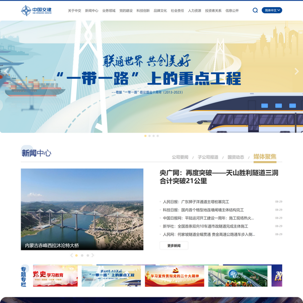 中交集團(tuán)(https://www.ccccltd.cn/)已被三體網(wǎng)址大全收錄在網(wǎng)址百科信息庫(kù)中,所在分類目錄為”行業(yè)網(wǎng)站 > 物流運(yùn)輸 > 快遞/物流/轉(zhuǎn)運(yùn)/港口/高速“目錄,百科頁(yè)面地址:http://m.dgjclw.com/siteinfo/5913.html。三體網(wǎng)址大全匯聚國(guó)內(nèi)優(yōu)秀網(wǎng)站大全,是提升網(wǎng)站外部鏈接流行度以及影響力的權(quán)威分類目錄及收錄提交入口,歡迎廣大優(yōu)質(zhì)網(wǎng)站提交收錄申請(qǐng)。