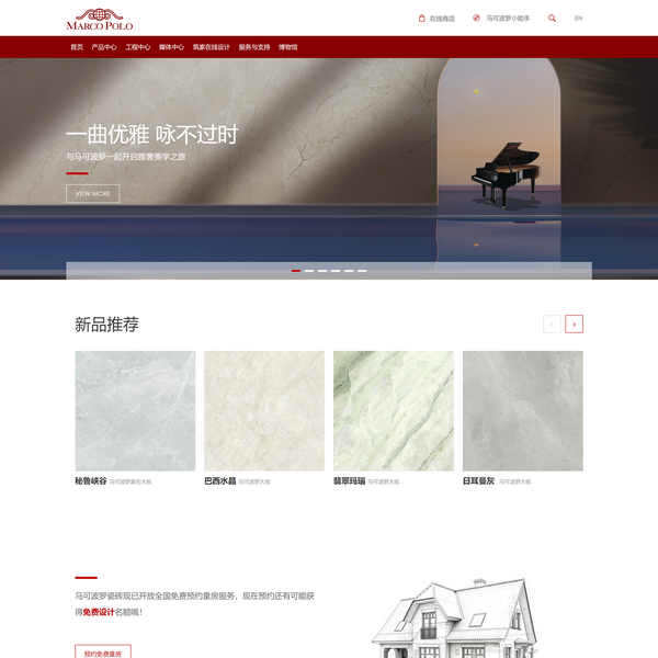 馬可波羅專注建陶生產(chǎn),90年代初,***片防滑磚和仿古磚相繼推出,打響品牌知名度。堅(jiān)持技術(shù)創(chuàng)新和產(chǎn)品革新,馬可波羅瓷磚相繼研發(fā)出引領(lǐng)行業(yè)發(fā)展的“E石代”、“中國印象”、地理石、真石、巖板等優(yōu)質(zhì)產(chǎn)品,目前產(chǎn)品涵蓋亞光磚、拋光磚、拋釉磚、內(nèi)墻瓷片、陶瓷巖板、崗巖等所有品類?!榜R可波羅巖板”系列產(chǎn)品卓越性能,自主研發(fā)的曲面巖板***彎曲弧度可達(dá)180°。為推動巖板推廣和全空間應(yīng)用,馬可波羅作為主編單位,參與制定T-GBMA001-2019 《陶瓷大板施工技術(shù)規(guī)程》、CECS標(biāo)準(zhǔn)《陶瓷大板掛裝工程技術(shù)規(guī)程》、《裝配式建筑用陶瓷磚(板)》等行業(yè)標(biāo)準(zhǔn)。