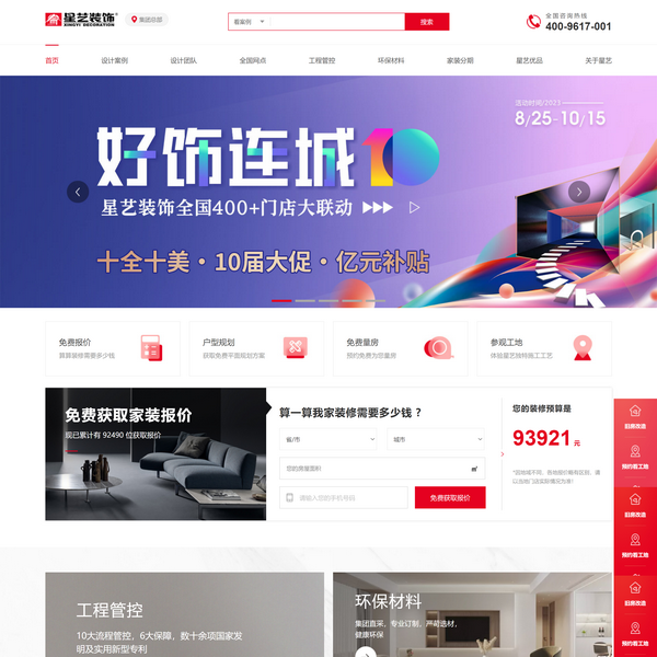 廣東星藝裝飾集團(tuán)有限公司注冊于1998年,其前身為余靜贛先生于1991年在廣州創(chuàng)立的三星服務(wù)部。2004年經(jīng)國家工商行政管理總局商標(biāo)局注冊,以“星藝裝飾”為品牌商標(biāo)標(biāo)識。星藝裝飾是一家以承擔(dān)各類建筑室內(nèi)、室外裝飾裝修工程設(shè)計和施工為主,以制造家具、銷售建筑裝飾材料和裝飾工藝品為輔的大型裝飾集團(tuán)公司。星藝裝飾400多家經(jīng)營網(wǎng)點遍布全國20多個省、直轄市、自治區(qū),是中國建筑裝飾協(xié)會常務(wù)理事單位,中國建筑裝飾協(xié)會住宅裝飾裝修和部品產(chǎn)業(yè)分會副會長單位。公司具有國家建筑裝飾工程設(shè)計專項甲級、建筑裝修裝飾工程專業(yè)承包一級資質(zhì)、建筑工程施工總承包三級資質(zhì),并通過GB/T 24001-2016/ISO 14001:2015環(huán)境管理體系認(rèn)證。星藝裝飾是國內(nèi)經(jīng)營網(wǎng)點分布廣泛、從業(yè)人員眾多,且具有強(qiáng)大專業(yè)實力的大型裝飾裝修設(shè)計、施工企業(yè)和旗艦品牌。