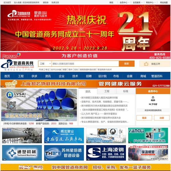 管道商務(wù)網(wǎng)www.chinapipe.net(始于2002年)是專(zhuān)注于管道行業(yè)的B2B電商服務(wù)平臺(tái)!包括管塑料管道,鋼管,管材,不銹鋼管,無(wú)縫鋼管,管線(xiàn),保溫管擬在建工程項(xiàng)目、管道標(biāo)準(zhǔn)規(guī)程、非開(kāi)挖工程等管道信息,為國(guó)內(nèi)管道管材企業(yè)提供全面的管道行情資訊和管道電子商務(wù)服務(wù)。