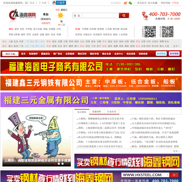 海鑫鋼網(wǎng)是從事鋼鐵行業(yè)的鋼材信息網(wǎng)站,扎根福建,輻射全國各省,提供鋼材價格,鋼材行情分析,鋼材資訊,鋼材市場,建材價格,鋼材供應(yīng)信息,鋼材求購信息等。