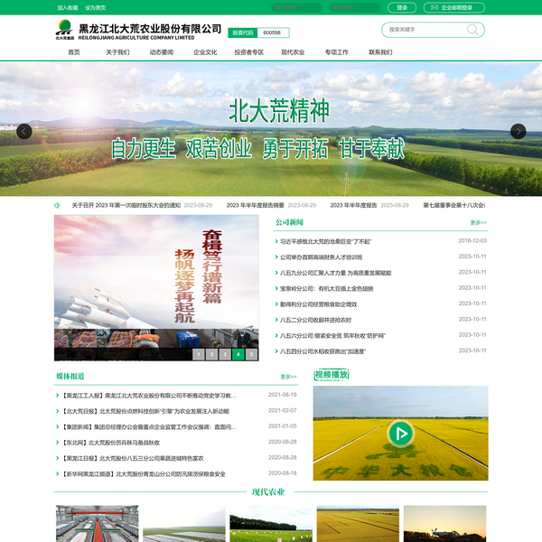 黑龍江北大荒農(nóng)業(yè)股份有限公司(以下簡稱公司)是由北大荒農(nóng)墾集團有限公司(原黑龍江北大荒農(nóng)墾集團總公司)作為***發(fā)起人,發(fā)起設(shè)立的股份有限公司。公司于1998年11月27日在黑龍江省工商行政管理局注冊成立,于2002年3月29日在上海證券交易所掛牌交易,股票代碼600598。截止2022年末,公司資產(chǎn)總額82.28億元,擁有17家分公司、8家子公司、參股5家公司。主要從事谷物、豆類、油料等作物的種植及銷售;農(nóng)副產(chǎn)品初加工;農(nóng)業(yè)技術(shù)開發(fā)、技術(shù)咨詢、技術(shù)服務(wù)及技術(shù)轉(zhuǎn)讓;倉儲服務(wù);食品生產(chǎn)經(jīng)營;糧食收購等。