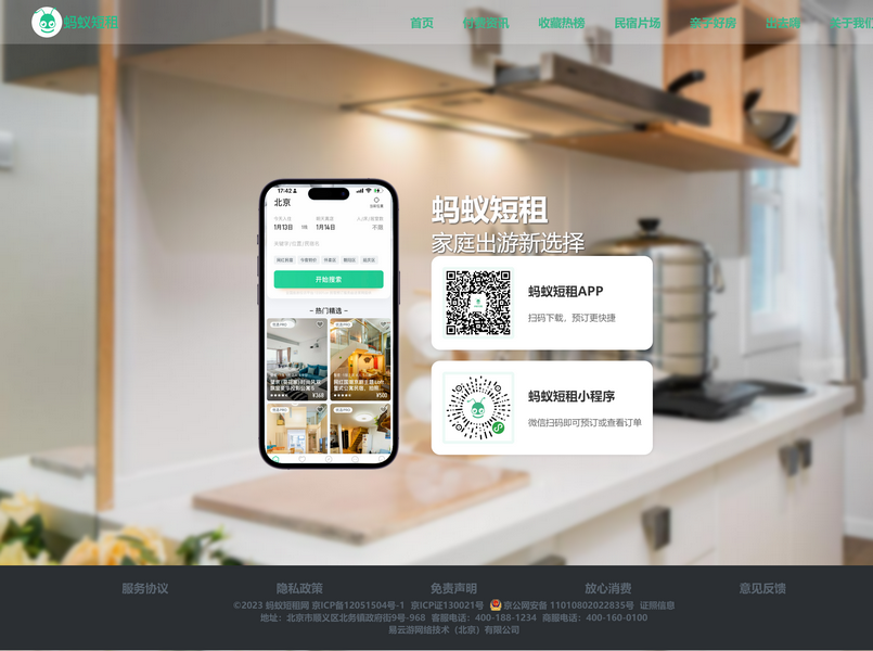 螞蟻短租網(wǎng)是國內(nèi)領(lǐng)先的公寓,民宿,家庭旅館在線短租平臺,致力于為休閑度假旅游人群提供高性價(jià)比的住宿服務(wù),房源配備客廳廚房,可洗衣做飯,是家庭出游新選擇。