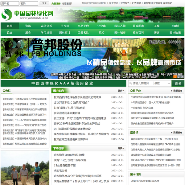 中國園林綠化行業(yè)的門戶資訊網(wǎng)站,內(nèi)容覆蓋園林綠化,園林工程,招投標,園林設(shè)計,園林植物,園林景觀,花卉,苗圃,植物庫,園林英才網(wǎng),論壇交流互動,周期性舉辦園林大師學(xué)術(shù)沙龍,報告會,園林綠化AAA級信用企業(yè)評選等活動。