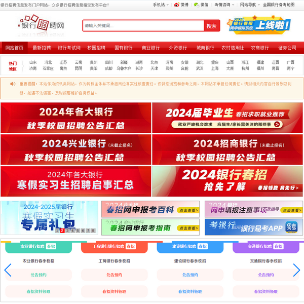 銀行招聘網(wǎng)為所有想從事銀行工作的求職者提供***的全國(guó)各家銀行招聘信息,同時(shí)也為求職者提供銀行求職、會(huì)計(jì)從業(yè)、銀行從業(yè)資格、證券從業(yè)資格、注冊(cè)會(huì)計(jì)師等面試、筆試、試題等多種相關(guān)信息。