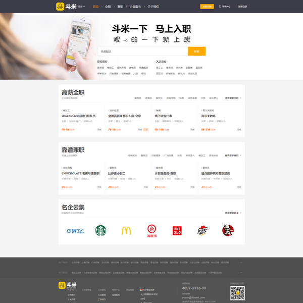 作為中國領(lǐng)先高效的一站式招聘服務(wù)平臺,面向廣大基層崗位求職者,斗米提供安全、豐富的全職與兼職工作信息,并通過產(chǎn)品創(chuàng)新與服務(wù)保障,為用戶打造了更加良好的求職體驗,幫助求職者快速找到合適崗位?!岸访滓幌?,馬上入職” 不只是一句口號,更是斗米產(chǎn)品所秉承的服務(wù)愿景,截止2018年年末,斗米平臺用戶量超7600萬,位于行業(yè)前列。
