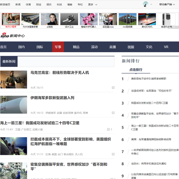 新浪軍事頻道是一個專業(yè)的軍事知識網(wǎng)站,覆蓋國內(nèi)軍事新聞、國際軍事新聞、軍備動態(tài)、臺海形勢、我軍新聞、軍帖精選、新聞評述、軍事視頻、軍事圖片、新浪軍事論壇。