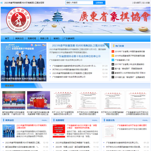 廣東象棋協(xié)會(huì)網(wǎng)集競賽規(guī)程、棋類動(dòng)態(tài)、協(xié)會(huì)公告、省棋隊(duì)介紹、棋類特色學(xué)校、棋類論壇等于一體的專業(yè)性、知識(shí)性、互動(dòng)性及群眾性的大型棋類官方網(wǎng)站。