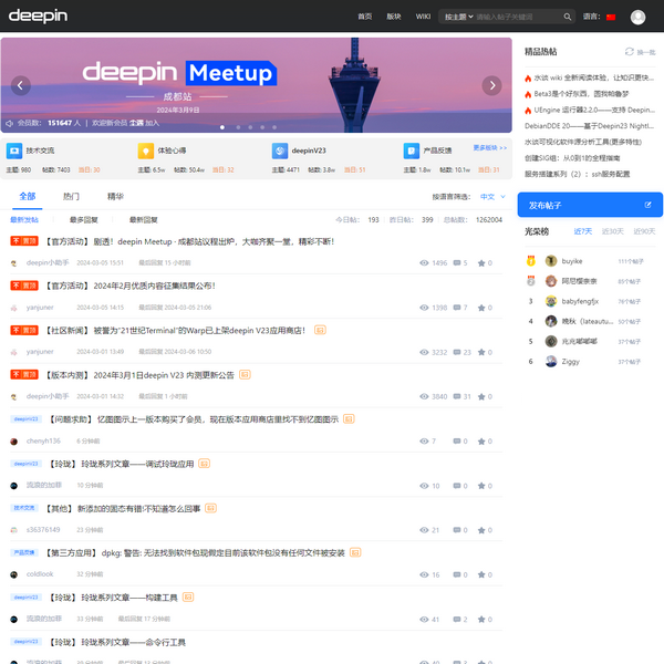 deepin官方論壇是深度科技官方***的deepin用戶技術(shù)交流網(wǎng)站,提供***國產(chǎn)深度操作系統(tǒng)版本,最豐富的應(yīng)用軟件、主題、游戲,最豐富的深度科技活動信息,匯集深度應(yīng)用、深度操作系統(tǒng)等使用技巧分享、互助交流內(nèi)容。