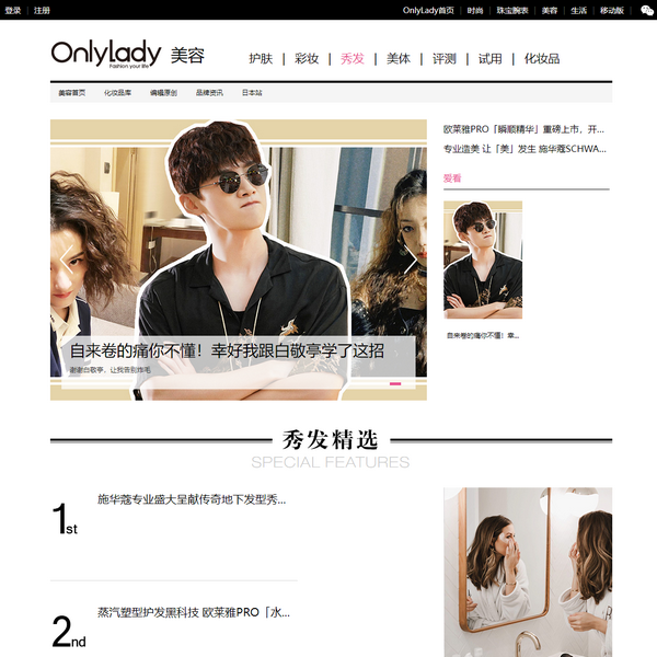 OnlyLady女人志-女性時(shí)尚生活平臺(tái)秀發(fā)頻道由秀發(fā)護(hù)理、流行發(fā)型、秀發(fā)圖片等組成,內(nèi)容主要介紹當(dāng)下的流行發(fā)型,時(shí)尚發(fā)型,明星發(fā)型和秀發(fā)護(hù)理的相關(guān)知識(shí),為喜歡秀發(fā)和發(fā)型的網(wǎng)友提供秀發(fā)護(hù)理知識(shí)和海量的發(fā)型圖庫(kù)供于參考學(xué)習(xí)!