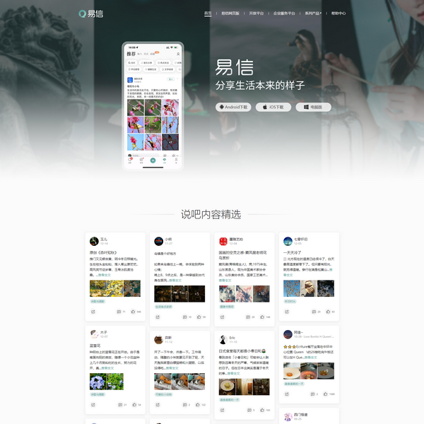 易信是一款內(nèi)容社交軟件,產(chǎn)品主打話(huà)題社區(qū)版塊沉淀優(yōu)質(zhì)內(nèi)容,為負(fù)重中年提供一個(gè)表達(dá)自我、溝通觀點(diǎn)的開(kāi)放平臺(tái)。來(lái)易信,聊天、發(fā)帖、交友,體驗(yàn)全新內(nèi)容社交。